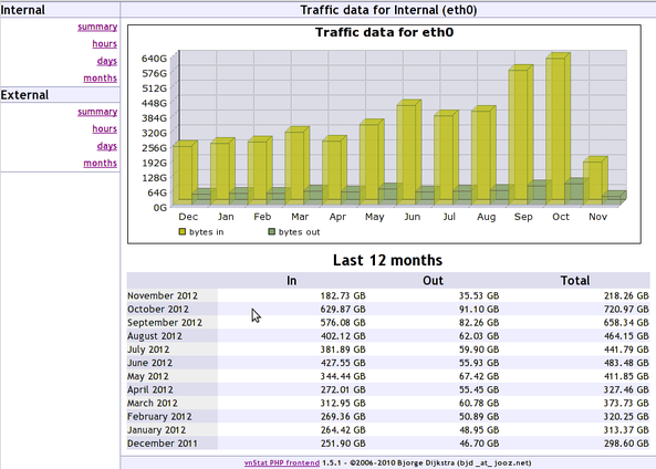 da qui in avanti potrete tenere sotto controllo i consumi della/e vostra interfaccia di rete (ora,giorno,mese).