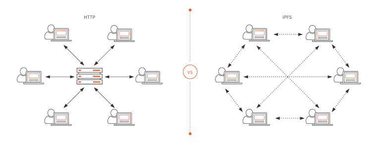IPFS vuole dunque cambiare il protocollo standard da https:// a ipfs:// , che può sembrare una cosa insignificante, invece tutto questo cambia moltissimo l’uso della rete per ogni utente, perchè con IPFS quando richiediamo un’informazione in rete , non la stiamo più chiedendo ad un insieme di server, sparsi chissà dove nel mondo, e di proprietà di una Big Corporation, ma lo stiamo chiedendo a qualcuno che si trova vicino a noi e che condivide quella informazione, nello spirito dei sistemi peer-to-peer.