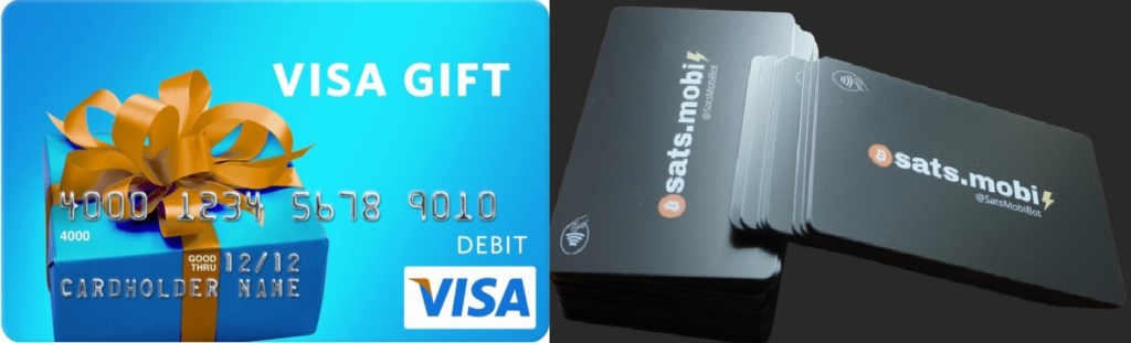 Beh, dopo aver creato le Sats Mobi Card, è sorta conseguentemente la necessità di capire come fosse possibile usare i Sats per poter andare a pagare anche là dove i Sats non sono ancora accettati, fornendo al tempo stesso agli utenti un servizio che rimanesse Privacy Compliance rimanendo non KYC. Questo perchè si potrebbe decidere di voler comprare qualcosa online o comprare qualcosa fisicamente usando una card che sia accettata sul circuito Visa, ma che ci permetta di comprare usando i nostri Sats Lighting Network. Per rispondere a queste esigenze hanno realizzato queste Visa Gift Card; sono carte virtuali, quindi non sono carte fisiche, non vi arriverà a casa la carta di plastica, ma essendo virtuali, possono essere inserite dentro sistemi di pagamento come GooglePay o ApplePay, permettendo così anche pagamenti fisici presso negozi e/o gestori che accettano normali pagamenti contactless, inoltre possono essere caricate sul proprio account Amazon oppure su quello PayPal.